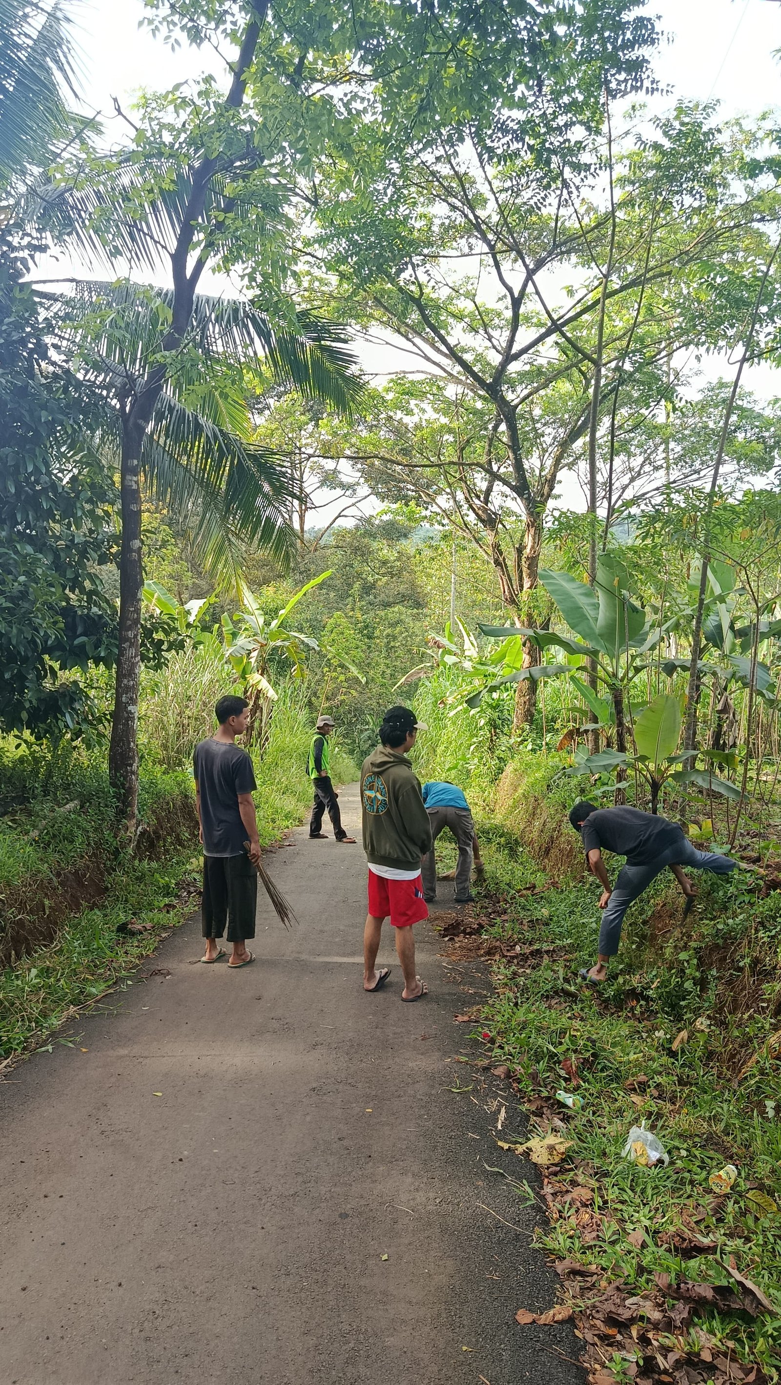 Kegiatan bersih-bersih lingkungan dilaksanakan dengan melibatkan partisipasi aktif masyarakat setempat. Mahasiswa KKN bersama warga bergotong royong membersihkan jalan kampung, saluran drainase, serta area sekitar pemukiman. Sampah-sampah yang berserakan dikumpulkan dan dibersihkan guna menciptakan lingkungan yang lebih bersih, rapi, dan terbebas dari potensi sumber penyakit.