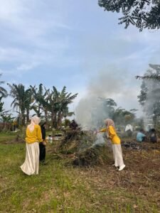 di Desa Cisande, udara tidak hanya diisi oleh kicau burung, tetapi juga oleh semangat kebersamaan yang membuncah. Mengenakan almamater dan pakaian kerja, para mahasiswa KKN tampak melebur menjadi satu dengan warga setempat di area pemakaman desa.Dalam balutan pakaian bernuansa kuning dan hijau yang kontras dengan hijaunya rerumputan, para mahasiswa tidak segan turun tangan mencabut rumput liar dan mengumpulkan dahan-dahan kering.